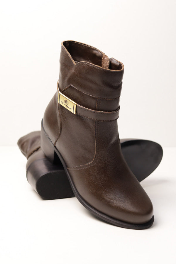 A Bota Feminina Realeza Chocolate em Couro possui solado em borracha com salto em couro de 4,5 cm, costurado e colado para maior resistência. Conta ainda com costuras reforçadas, estrutura de calcanhar firme e garantia de 1 ano. Um modelo que traduz o equilíbrio perfeito entre elegância, conforto e durabilidade, assinando o estilo autêntico e refinado da linha Imperador.
