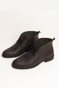 A Bota Masculina Cerrado Social em Couro Graxo Café possui forração interna 100% em couro, bordas e interior em couro aveludado, salto de 2,5 cm e solado colado em borracha gel flexível. Modelo com bico redondo, acabamento artesanal e garantia de 1 ano. Um calçado que traduz a essência do homem Imperador — autêntico, forte e com estilo que atravessa o tempo.