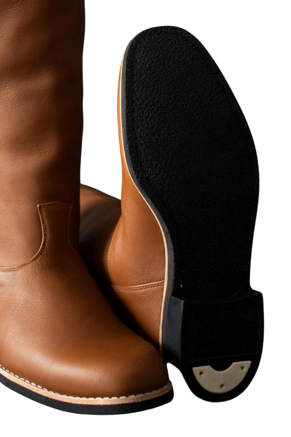 A Bota Masculina em Couro Cano Mole Café Caiena conta com forração interna 100% em couro, incluindo bordas e interior em couro aveludado, salto de 2,5 cm e solado colado em borracha gel macia. Modelo de bico redondo, com acabamento artesanal e garantia de 1 ano.
