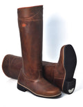 A Bota Masculina Monarca Café conta com couro nobre legítimo, costuras reforçadas e detalhe elegante no cano, ideal para quem busca ajuste confortável e caimento perfeito em panturrilhas mais grossas. Possui solado artesanal em borracha premium, salto de 3 cm, vira em couro, e solado colado e costurado. Forração em couro, espuma e tecido, palmilha Gel Confort adaptável e estrutura de calcanhar reforçada. Produto impermeável com garantia de 1 ano.