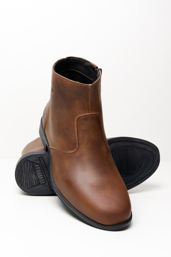 Seu design clean com zíper lateral garante praticidade ao calçar, sem abrir mão do estilo refinado. O solado em borracha gel proporciona conforto superior, flexibilidade e excelente aderência ao solo. O couro graxo oferece ainda hidrofugação natural, tornando o modelo impermeável e resistente às variações do dia a dia.