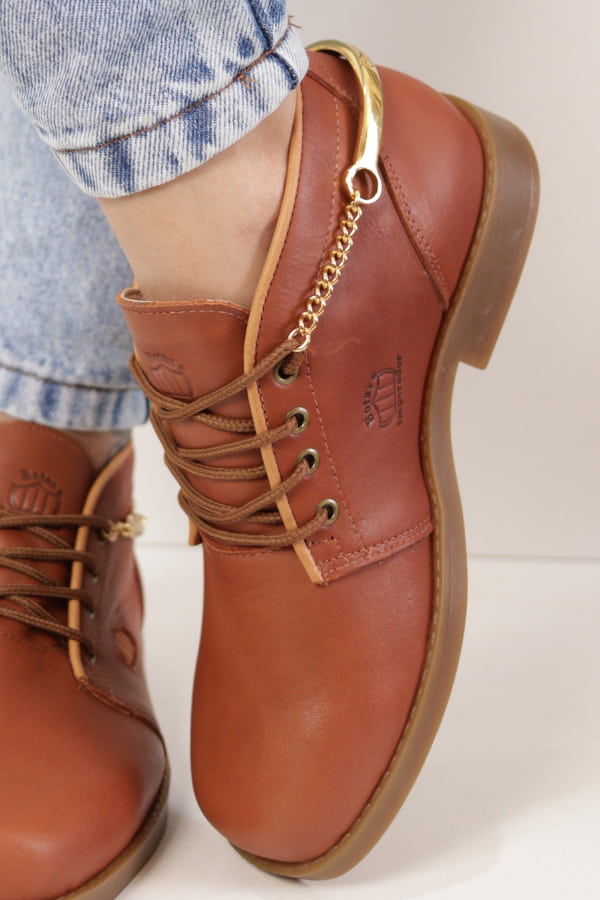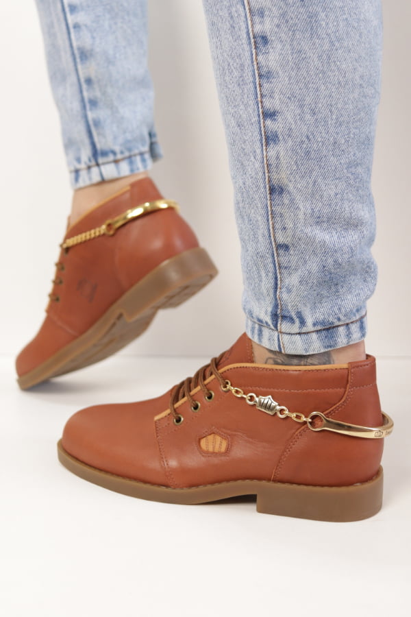 A Botina Feminina Confort em Couro Caiena com Espora de Ouro conta com costuras reforçadas, debrum em cor Baio, e solado em borracha gel, colado e costurado, com salto de 2,5 cm para maior estabilidade e conforto. Produto impermeável e com garantia de 1 ano, feita artesanalmente para quem busca o equilíbrio perfeito entre beleza, resistência e conforto.