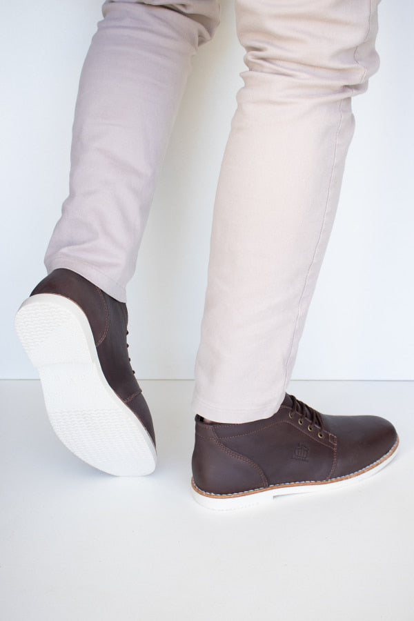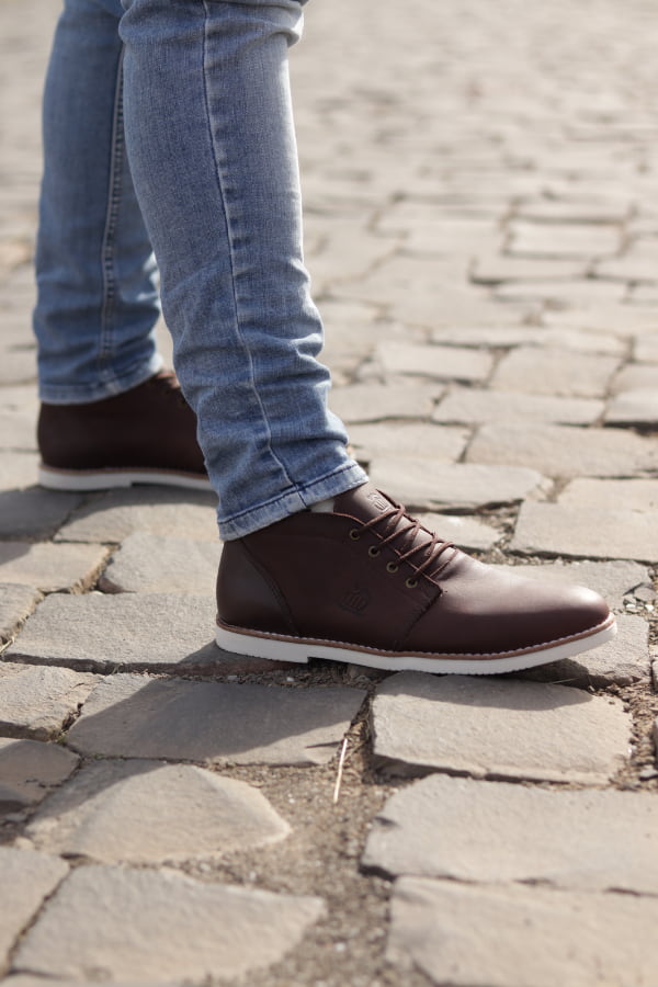 A Botina Masculina Casual em Couro Café apresenta solado em borracha natural macia e flexível, com coloração branca e dupla camada de borracha, oferecendo excelente aderência e estabilidade. Conta ainda com vira em couro legítimo, salto de 1,5 cm, e solado costurado e colado, garantindo durabilidade e firmeza em cada passo. Com garantia de 1 ano, é a escolha ideal para quem busca uma botina masculina casual, confortável e resistente, feita para acompanhar o ritmo de quem não abre mão de qualidade e estilo.