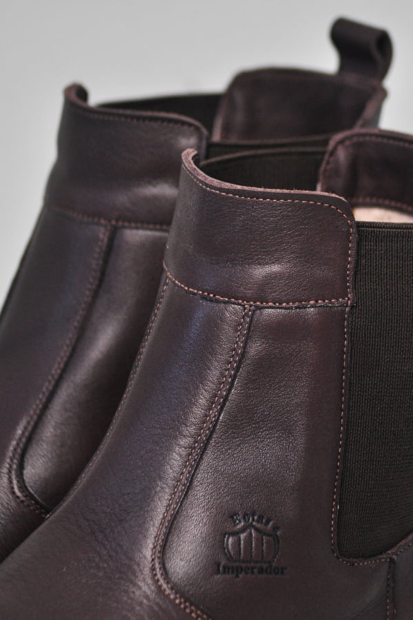 A Botina Masculina Chelsea Imperador Café conta com solado em borracha natural de dupla camada, com vira em couro costurada e colada, e salto de 6 cm, que oferece estabilidade, leveza e segurança a cada passo. Com costuras reforçadas e acabamento artesanal premium, ela une resistência e estilo em um único calçado.
