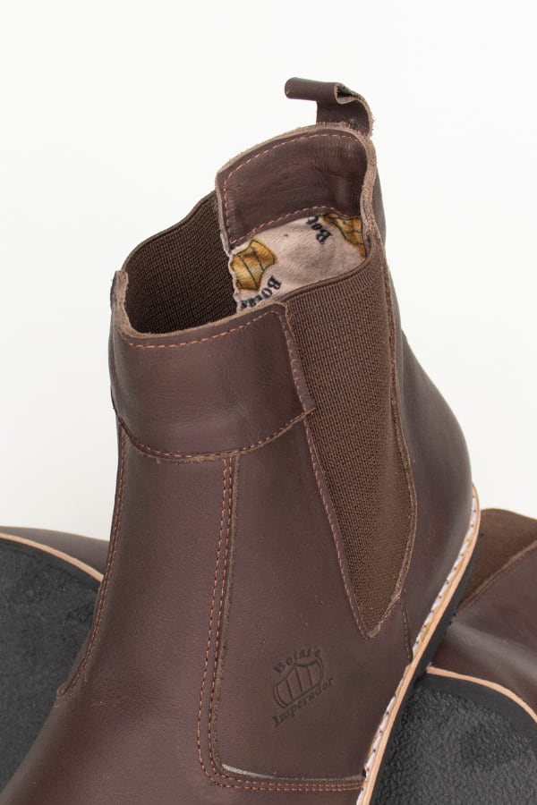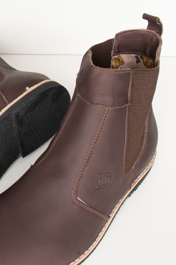 A Botina Masculina Chelsea Imperador Café conta com solado em borracha natural de dupla camada, com vira em couro costurada e colada, e salto de 1,5 cm, que oferece estabilidade, leveza e segurança a cada passo. Com costuras reforçadas e acabamento artesanal, ela une resistência e estilo em um único calçado.