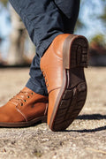 A Botina Masculina Confort em Couro Imperador Caiena conta com solado costurado e colado, salto de 2,5 cm e acabamento detalhado com coroa vazada e costura na cor Caíena, reforçando o cuidado em cada elemento do design. Seu visual marcante combina robustez e elegância, tornando-se uma escolha indispensável para quem busca qualidade, conforto e durabilidade — atributos que definem o padrão Imperador.