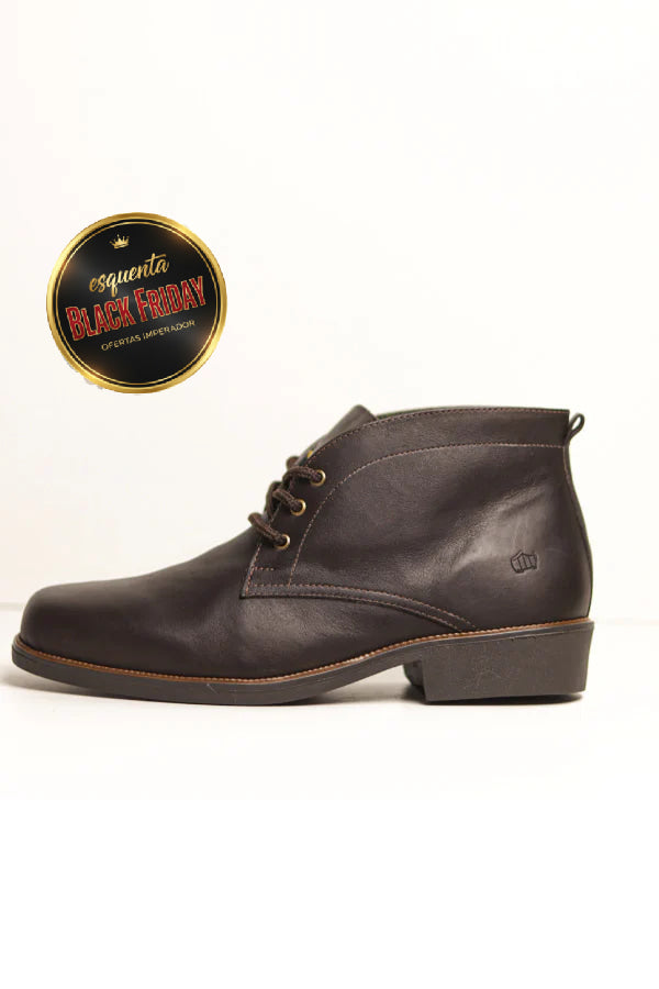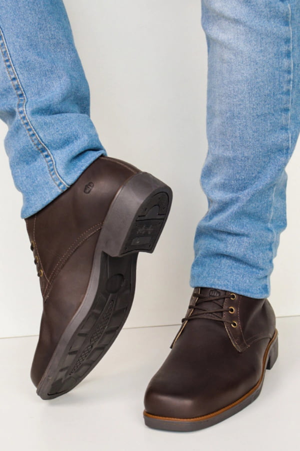 A Botina Masculina Dalida em Couro Café apresenta solado em borracha com vira em couro legítimo, costurado e colado para garantir resistência e durabilidade superiores. Seu design versátil combina perfeitamente com diferentes estilos, do social ao mais descontraído. Com garantia de 3 meses, é a escolha certa para quem busca uma botina masculina que une qualidade, conforto e elegância — mais um destaque da linha Imperador.