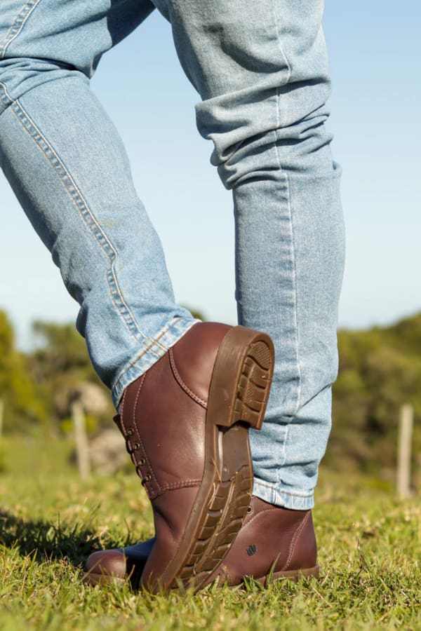 A Botina Masculina Imperador Café conta com solado em borracha gel antiderrapante, salto de 3 cm e estrutura costurada e colada, que garantem excelente aderência e resistência. Suas costuras reforçadas e acabamento de alta qualidade entregam um calçado robusto e versátil, feito para acompanhar quem valoriza conforto, estilo e tradição em cada passo.