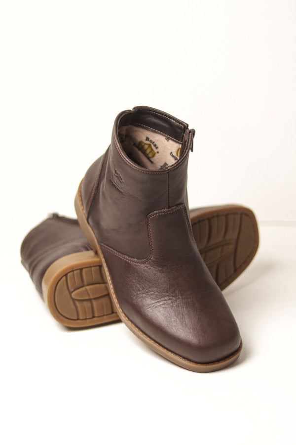 A Botina Masculina Imperador Café com Zíper conta com solado em borracha gel, salto de 2,5 cm, e estrutura costurada e colada, garantindo resistência e aderência superior. Com costuras reforçadas e acabamento artesanal, é um calçado durável, elegante e funcional.